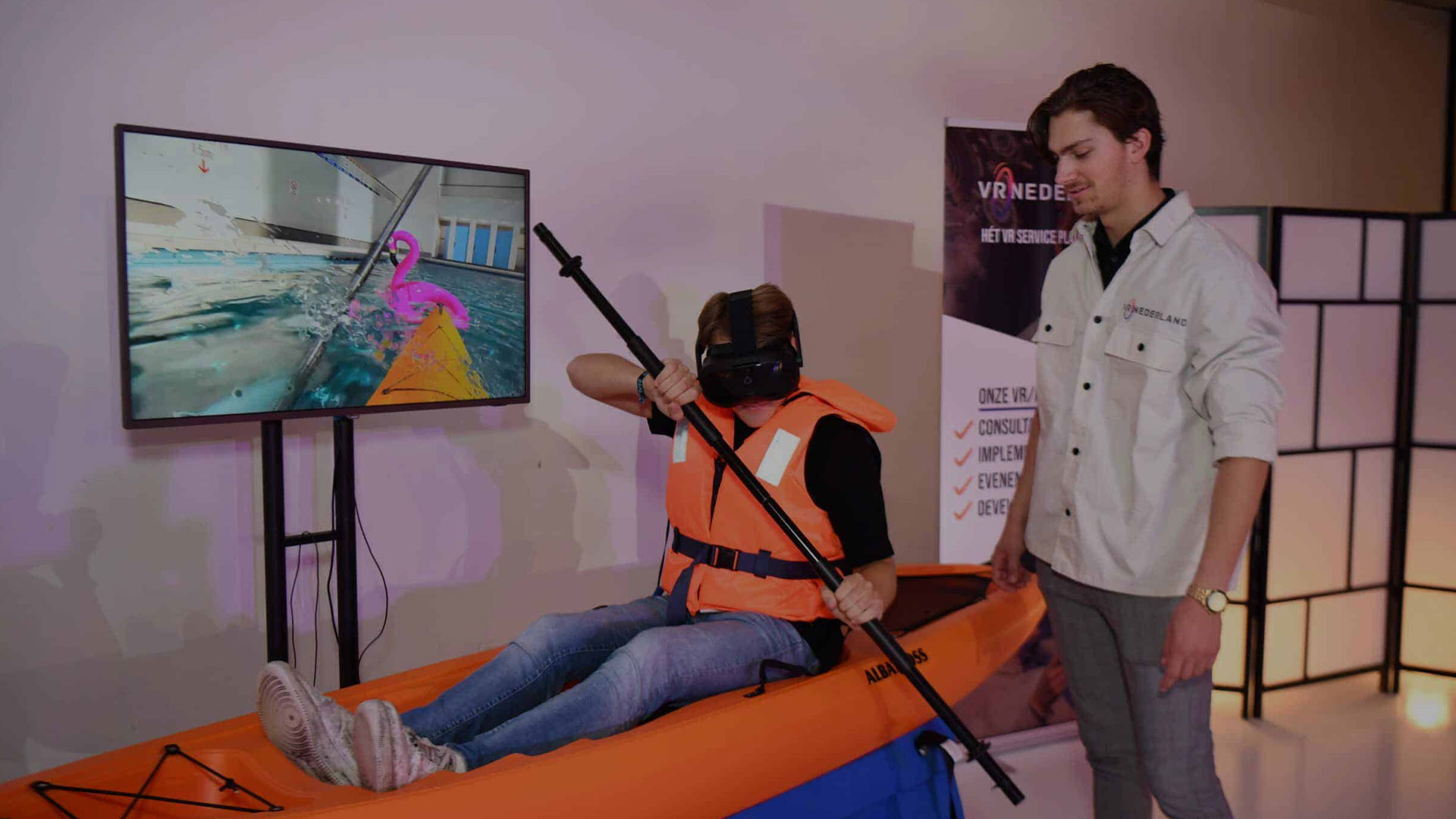 Duik in een virtueel kayak avontuur en ervaar de rust van een kalm meer of de uitdaging van ruige wateren. Of je nu kiest voor een verkenningstocht in je eigen tempo of een spannende race, deze ervaring biedt zowel ontspanning als avontuur.