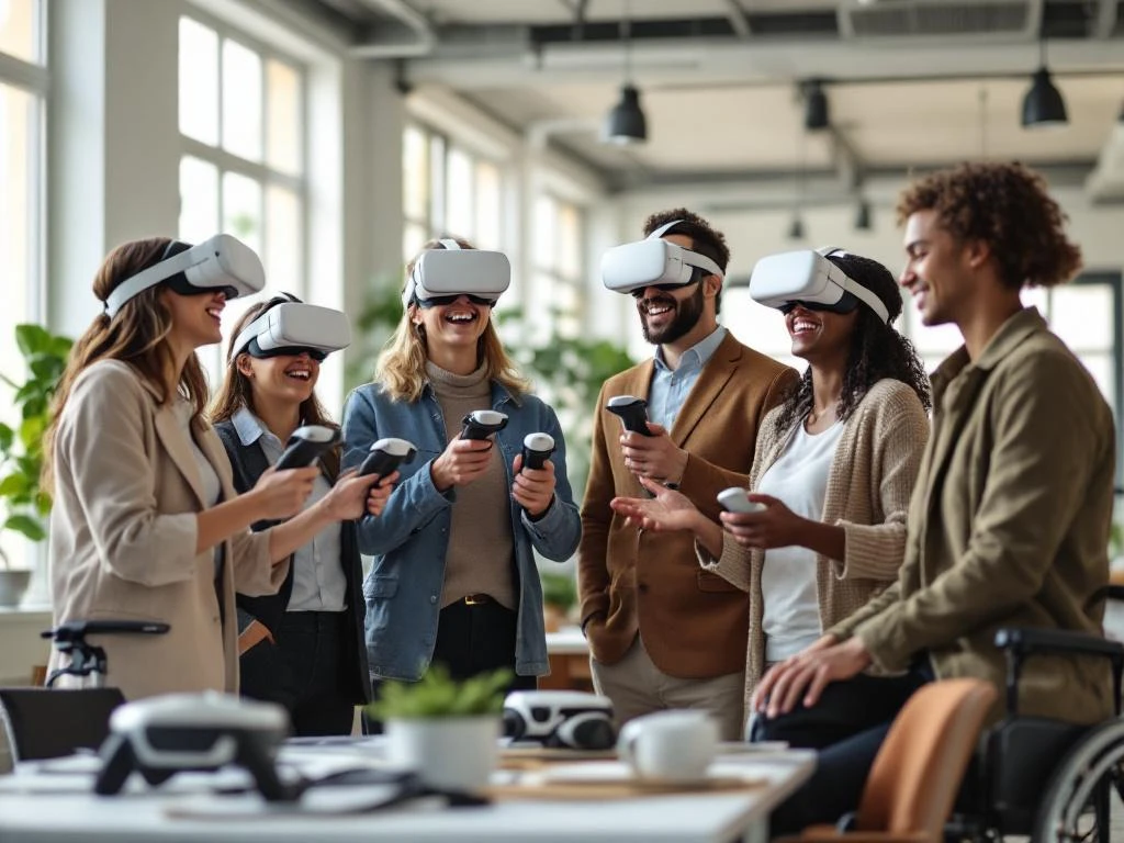 Technologie-gebaseerde ervaringen zoals Virtual Reality bieden unieke voordelen voor diverse teams. VR creëert een neutrale speelomgeving waar fysieke beperkingen minder relevant zijn en waar iedereen op gelijk niveau kan beginnen. Bovendien kunnen VR-ervaringen aangepast worden aan verschillende comfort zones en vaardigheidsniveaus.