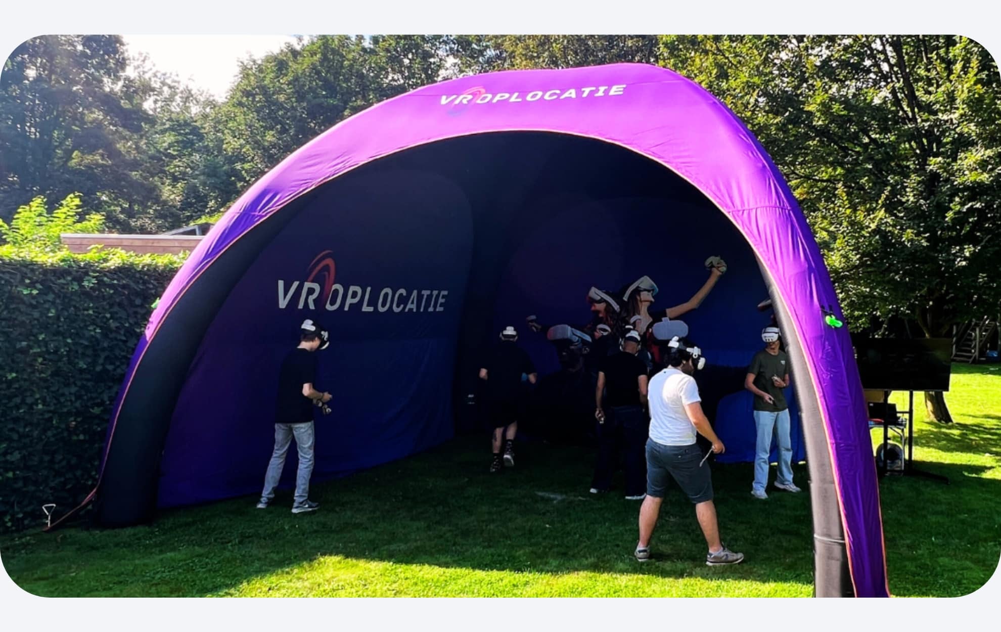 Mensen verwachten VR in een hightech lab, niet midden op een grasveld. En precies dát maakt het zo leuk. Je gasten stappen letterlijk de toekomst in, terwijl ze met hun schoenen nog in het gras staan.